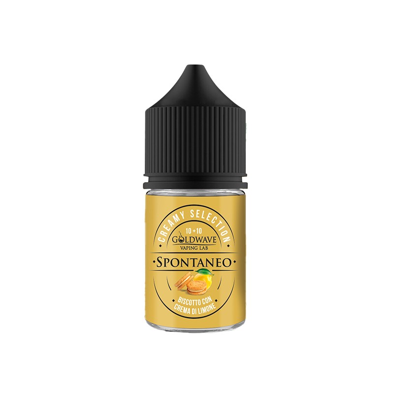 Goldwave Creamy Selection Spontaneo is a 10ml aroma in a 30ml bottle with a biscuit and lemon cream flavour.