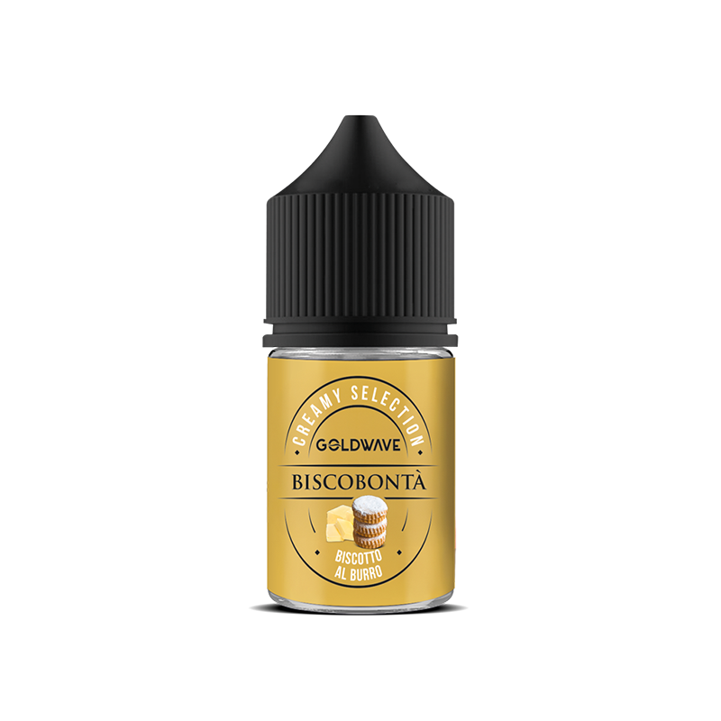 Goldwave Creamy Selection Biscobonta' is a 10ml flavor shot in a 30ml bottle. Goldwave's signature biscuit blends with butter to create the quintessential biscuit. A traditional recipe that will never go out of style.