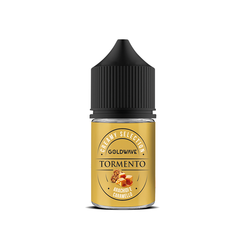 Goldwave Creamy Selection Tormento is a 10ml shot flavor in a 30ml bottle. Roasted peanuts blended with soft caramel. Every puff delivers a unique sensation that will send you into ecstasy.