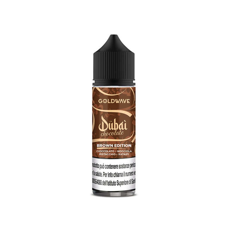 Goldwave Dubai Chocolate Brown Edition is a 20ml shot in a 60ml bottle. Chocolate, hazelnut, and pistachio blend with kataifi in a deep, warm, and lingering combination.