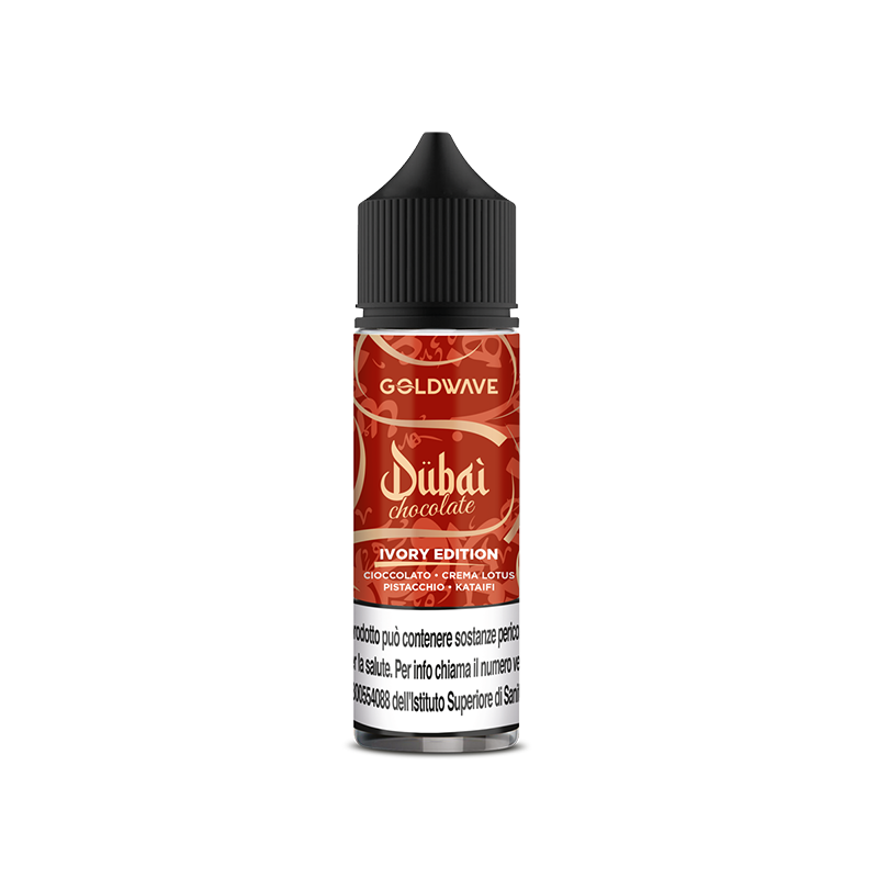 Goldwave Dubai Chocolate Ivory Edition is a 20ml shot in a 60ml bottle. Chocolate, lotus cream, and pistachio combine with kataifi in a rich, velvety, and enveloping blend.