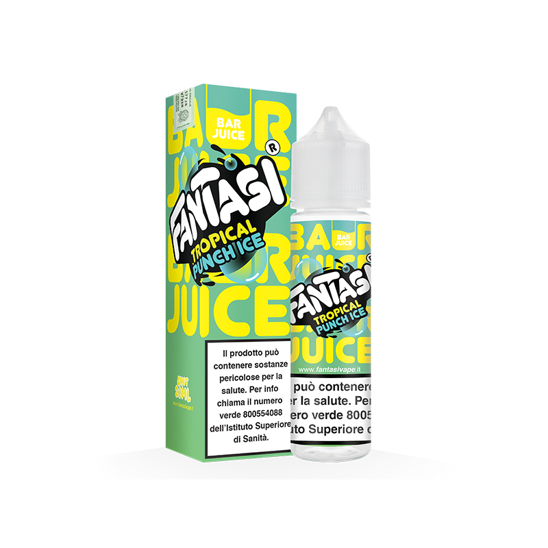 Fantasi Bar Juice Tropical Punch Ice is a 20ml vape shot in a 60ml bottle. Flavored with frozen tropical fruits.