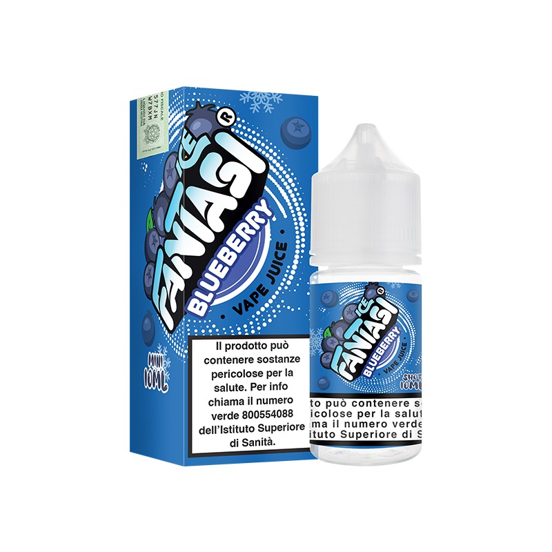 Fantasi Blueberry is a 10ml mini 10+10 shot in a 30ml bottle. Blueberry flavored.