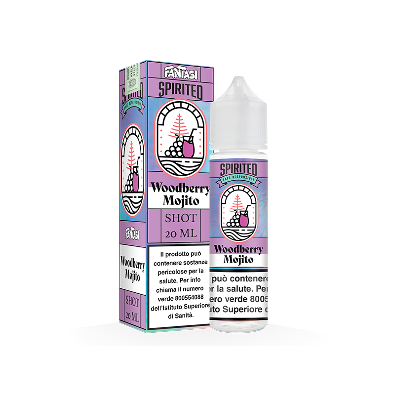 Fantasi Spirited Woodberry Mojito is a 20ml vape shot in a 60ml bottle. Mojito flavored.