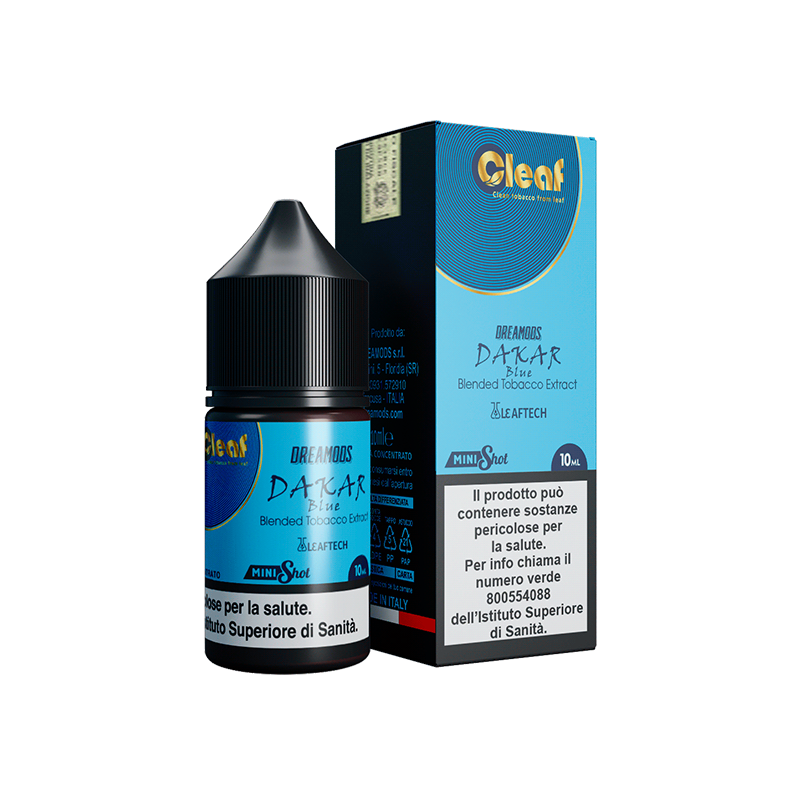 Mini shot 10+10 Dreamods - Cleaf - Dakar Blue. Blended Tabacco Extract - Burley and Virginia.