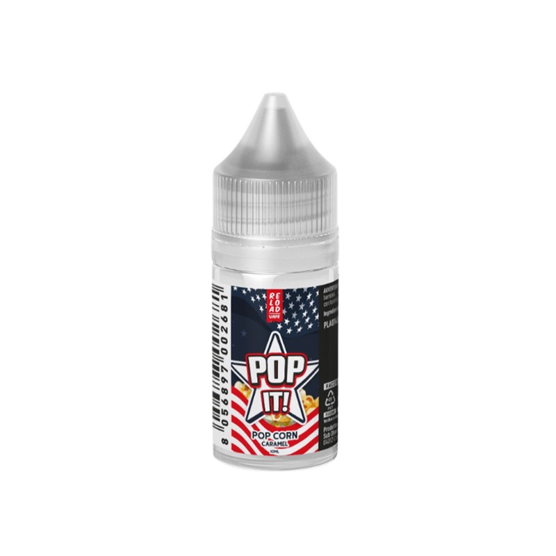 Reload Vape Pop It Pop Corn Caramel is a 10 ml mini flavor in a 30 ml bottle. It tastes like caramel popcorn.