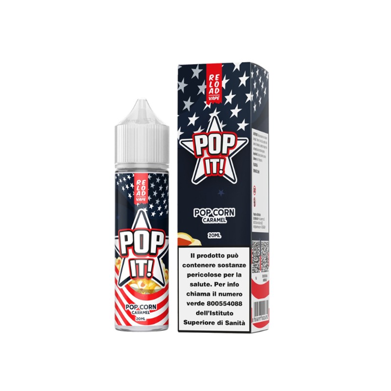 Reload Vape Pop It Pop Corn Caramel is a 20ml vape shot in a 60ml bottle. Caramel popcorn flavor.