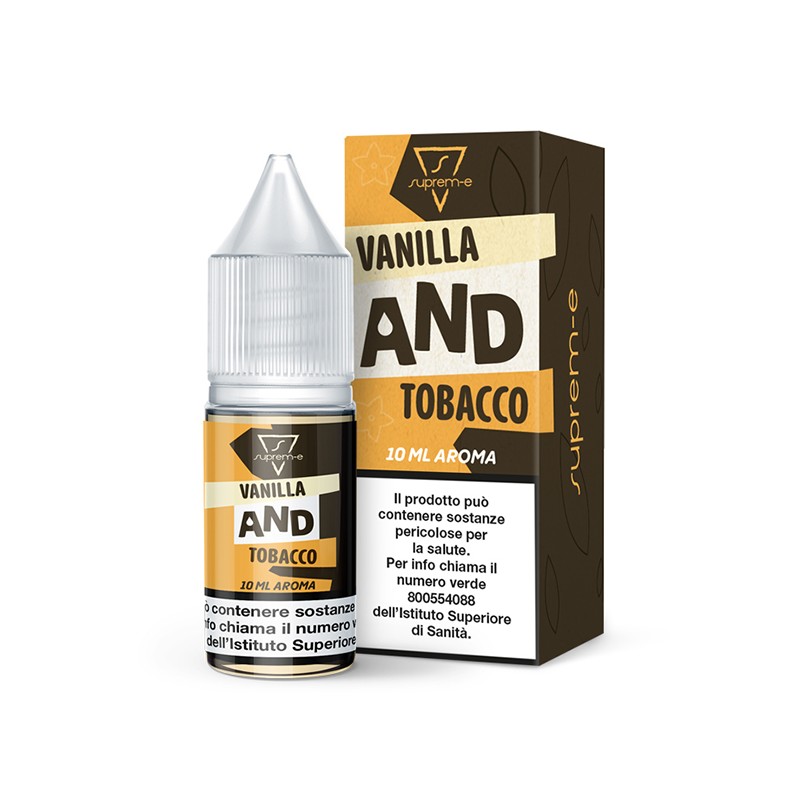 Suprem-e Vanilla and Tobacco aroma is a 10ml concentrated aroma in a 10ml bottle. Sweet and unmistakable notes of custard vanilla combine with notes of intense, rich, and full-bodied tobacco to create a flavor mix that will leave you surprised!