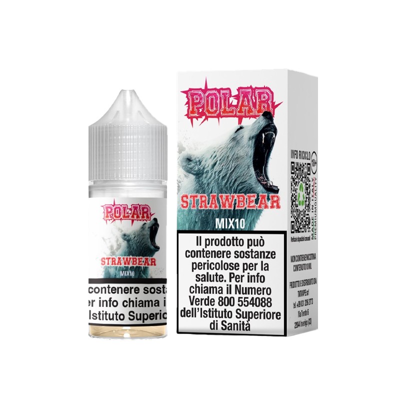 TNT Vape Polar Straw Bear is a 10ml mini mix. It features an icy strawberry, raspberry, and lemon flavor.