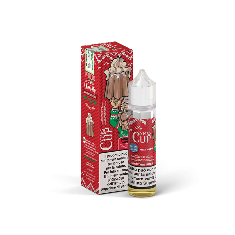 Vaporart Xmas Cup - Limited Edition is a 30ml mixable liquid in a 60ml bottle with 0 mg/ml nicotine. It has a flavor of Pandoro and Chantilly Cream.