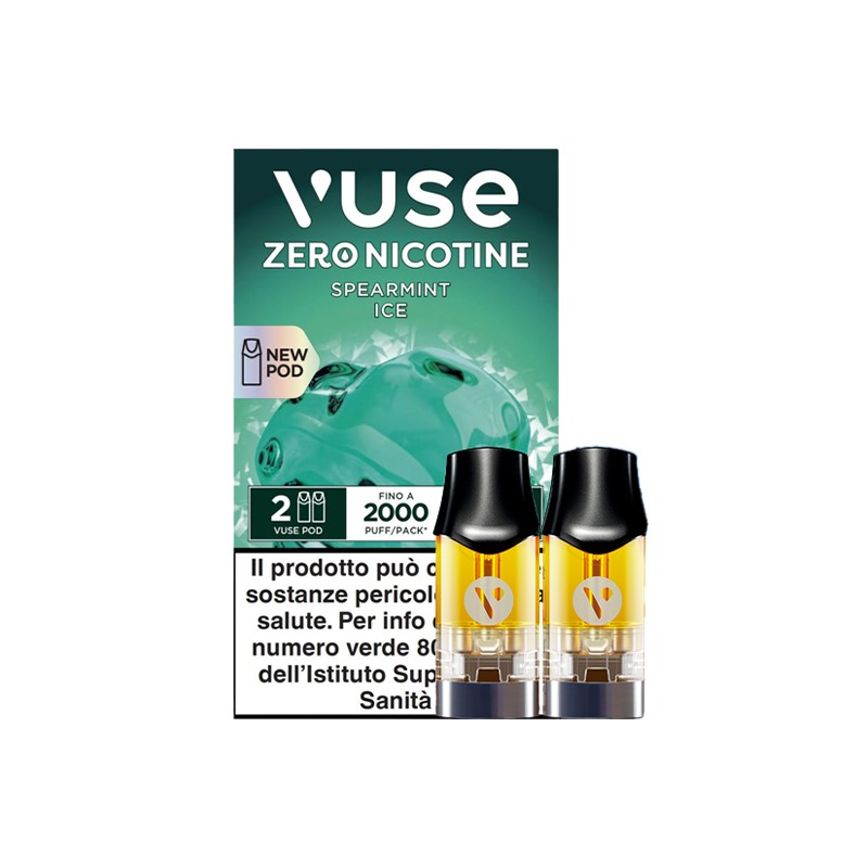 Vuse Preloaded Pods - Spearmint Ice with nicotine salts. Package includes 2 pods. Note: The pod cannot be used individually. It is compatible only with the Vuse PRO, Vuse GO Reload Pen 1000, and the Vuse Epod 2 (sold separately).