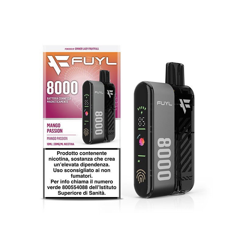 1 x Dinner Lady Fuyl 8000 battery 1 x Prefilled Pod Mango Passion - 20mg/ml