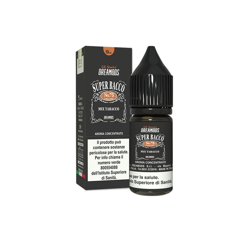 Dreamods Super Bacco No.75 - Koncentrirana aroma – Mešanica tobakov, ki jo morate preskusiti. - 10ml steklenička z zamaškom z zaščito pred otroki - Made in Italy – Etiketa v italijanščini
