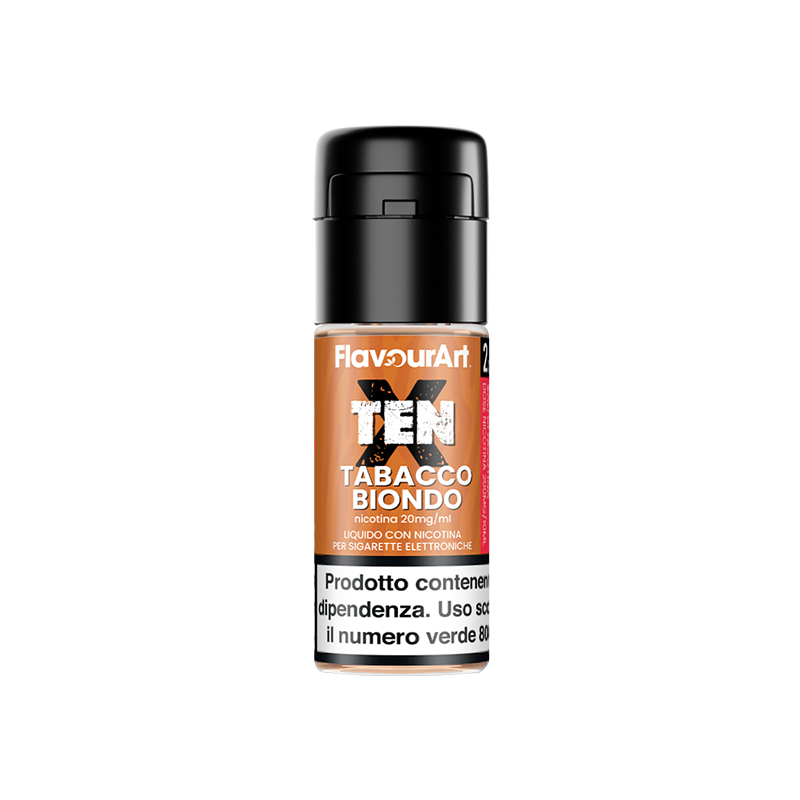 10ml ready-to-use liquid Flavourart TenX Tobacco Blond with nicotine salts, Blond Tobacco flavour. Nicotine 10-20mg/ml.