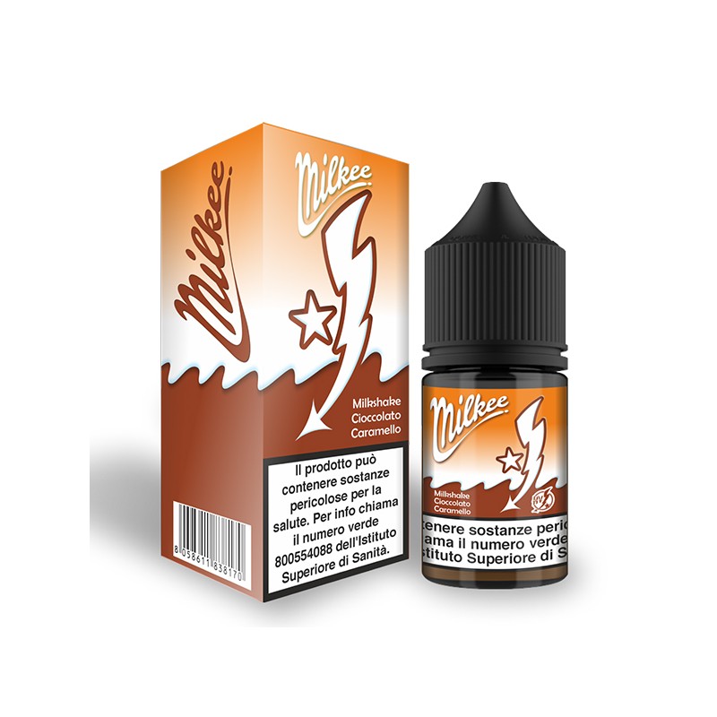 High Voltage Milkee Ciocolato Caramello is a 10ml vape shot in a 30ml bottle with a Chocolate and Caramel milkshake flavor.