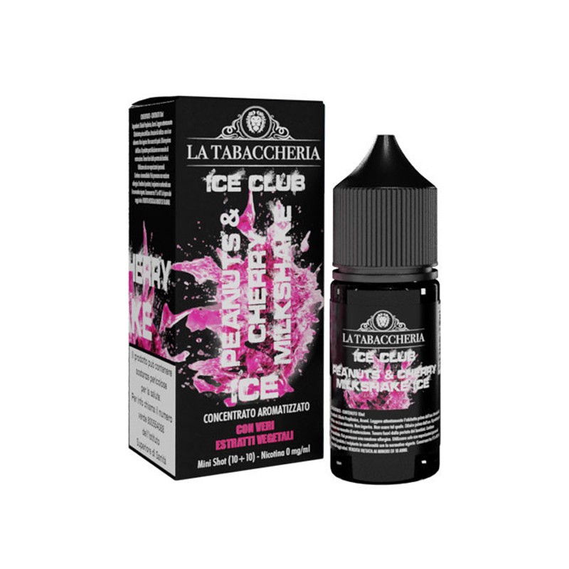 The La Tabaccheria - Ice Club - Peanuts & Cherry Milkshake Ice flavor is available in a 10ml format in a 30ml bottle. It tastes like a milkshake with peanuts and frozen cherry.