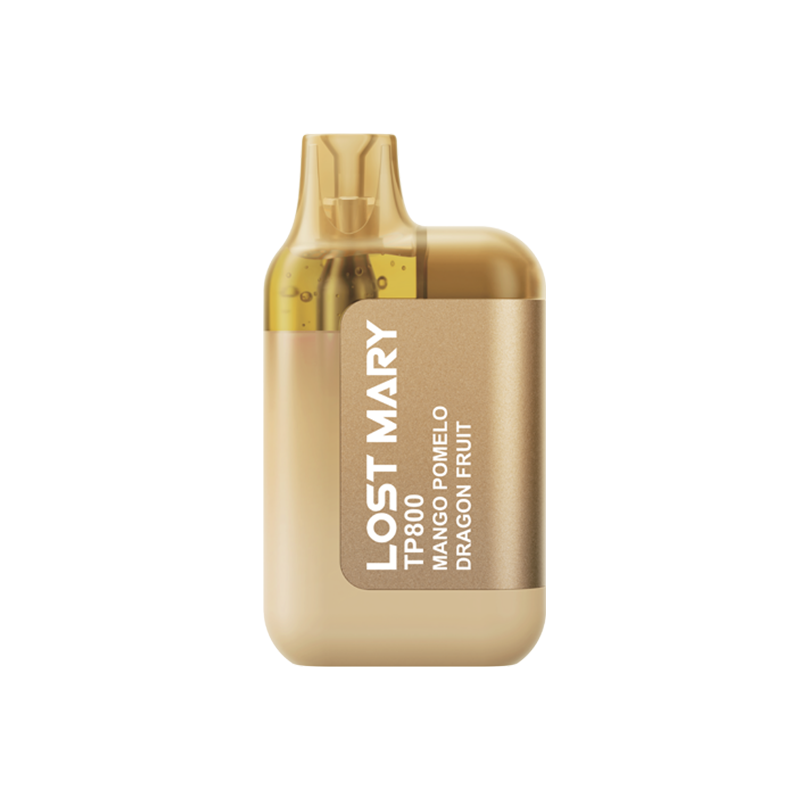 Lost Mary TP800 disposable e-cig with mango, pomelo, and dragon fruit flavors. Liquid capacity: 2ml. Power: 550mAh - 20mg/ml nicotine salts.