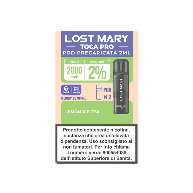 Lost Mary Toca PRO Preloaded Pod - Lemon Ice Tea with nicotine salts. Package includes 2 pods. Note: The pod cannot be used individually. It is compatible with all Lost Mary Toca Kits, sold separately.