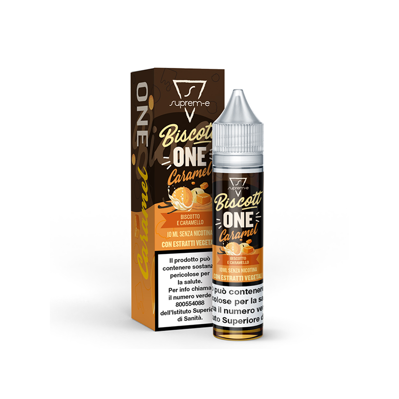 Suprem-e One Biscottone Caramel is a 10 ml shortfill eLiquid in a 20 ml bottle - 0 mg/ml. A timeless creamy liquid that captivates from the first puff. A fragrant biscuit base blends with the softness of cream and the warmth of butter, while a drizzle of salted caramel envelops the whole thing in a delicious embrace.