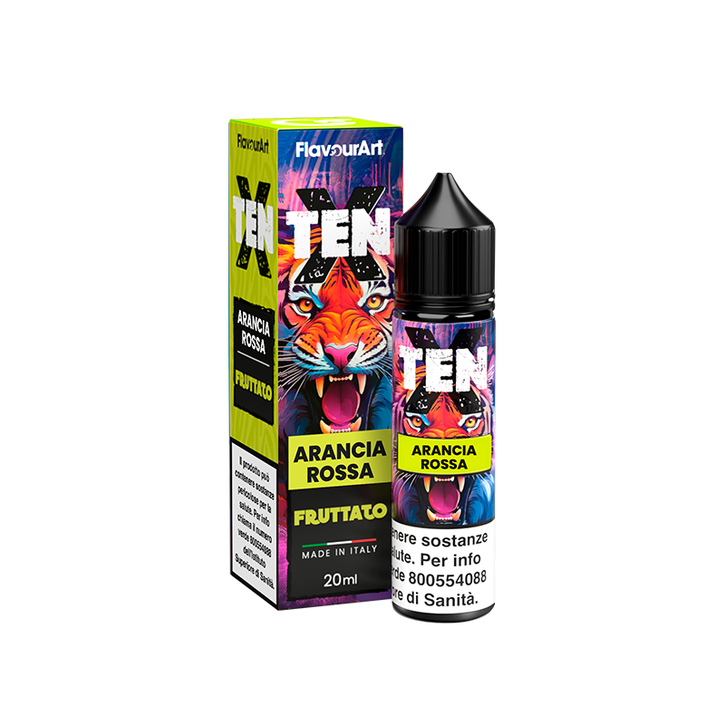 Flavourart TenX Arancia Rossa è un vape shot da 20ml in un flacone da 60ml. Gusto arancia rossa.