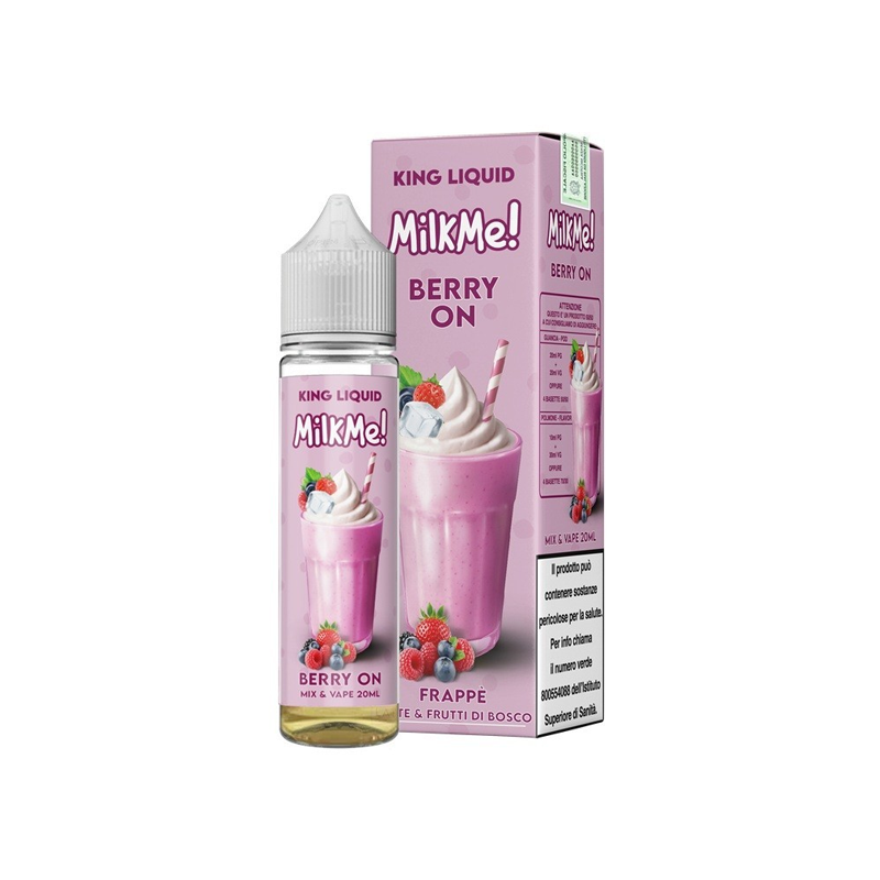 King Liquid Milkme! Berry On è un liquido mix and vape da 20 ml in una boccetta da 60 ml, al gusto di Frappè latte e frutti di bosco. Cremoso e vibrante.