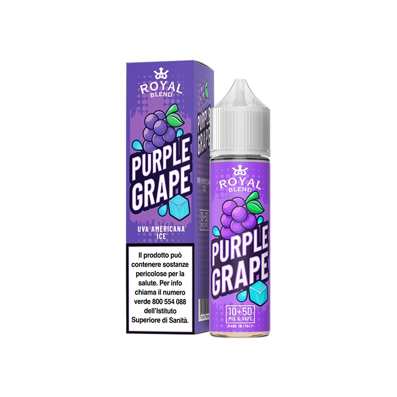 Royal Blend Purple Grape è un vape shot da 10 ml in un flacone da 60ml. Al gusto Ghiacciato di uva americana.