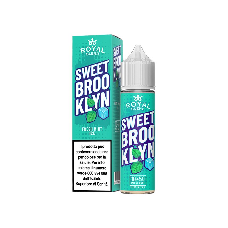 Royal Blend Brooklyn è un vape shot da 10 ml in un flacone da 60ml. Al gusto Ghiacciato di menta secca.