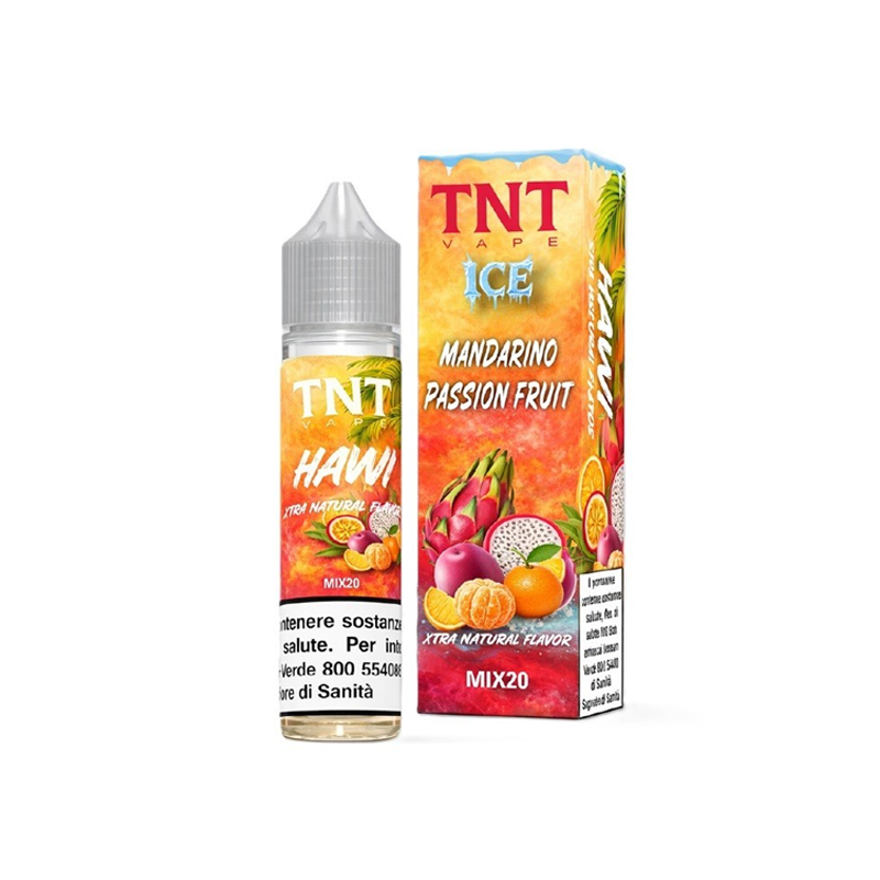 TNT Vape Fruity Ice Hawi Ice è un eLiquid shortfill 20ml in un flacone da 60ml - 0 mg/ml. Un mix di Mandarino e Passion Fruit che vuole rievocare la frizzantezza e la freschezza degli agrumi ghiacciati, ma con una buona dose di dolcezza!