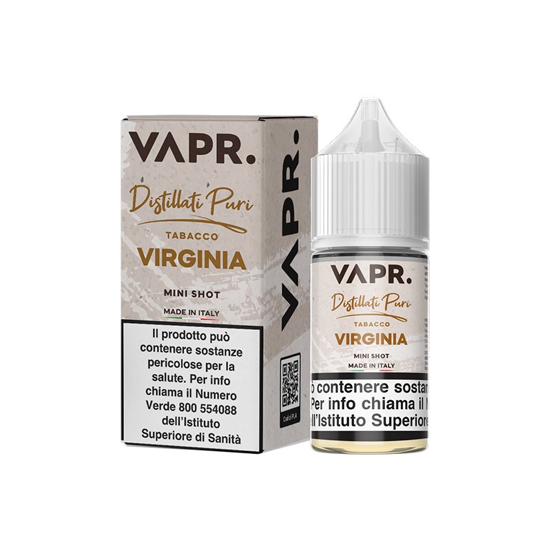 Caratteristiche Principali VAPR. Tabacco Virginia - Distillati Puri - Mini Shot 10+10 | |